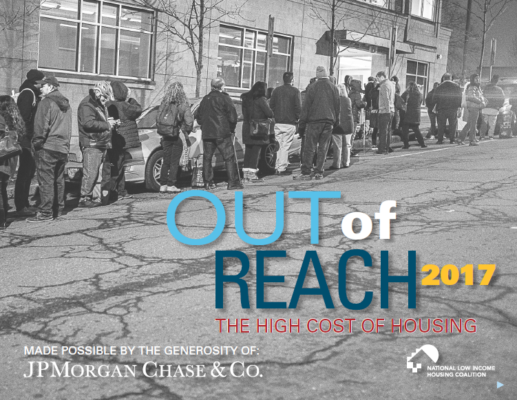 Out of Reach documents the gap between renters’ wages and the cost of rental housing. The report’s Housing Wage is the hourly wage a full-time worker must earn to afford a modest rental home without spending more than 30% of his or her income on housing costs. It is based on HUD’s Fair Market Rent (FMR), which is an estimate of what a family moving today can expect to pay for a modest rental home in the area.