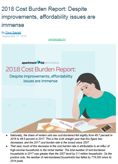 2018 Cost Burden Report: Despite improvements, affordability issues are immense, September 2018